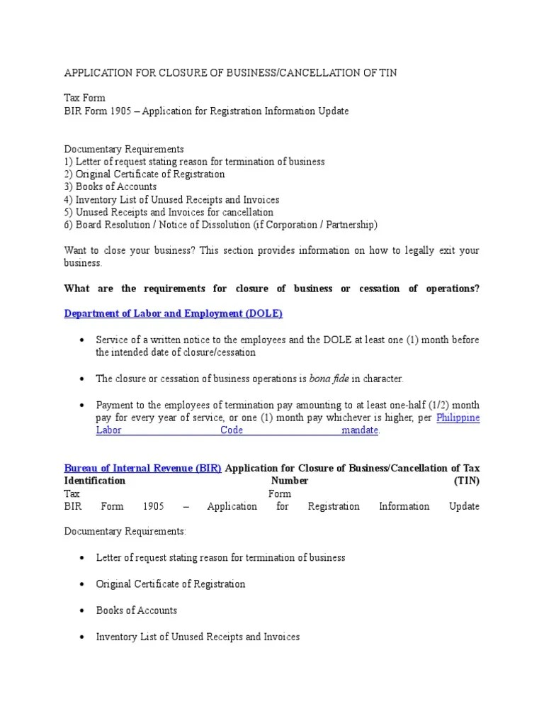 Sample Closure Letter For Business In Bir - Sample Closure Letter For Business In Bir How To Close A Business In The Philippines 2019 For Corporation Infinit3 Solutions Marketing And Consulting Agency If You Are Composing A Letter : The ending of a business letter should be in a way that the person reading your letter will immediately start drafting a reply.. What to put after the closing. Sample resignation letters for contractors and clients. Bir form 2303 or certificate of registration. The sender's name, door number and street's name, area name, city. With sample business letters, you can write a perfect ending to your formal letter.